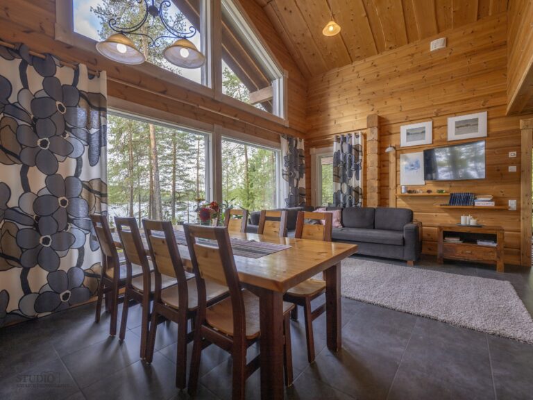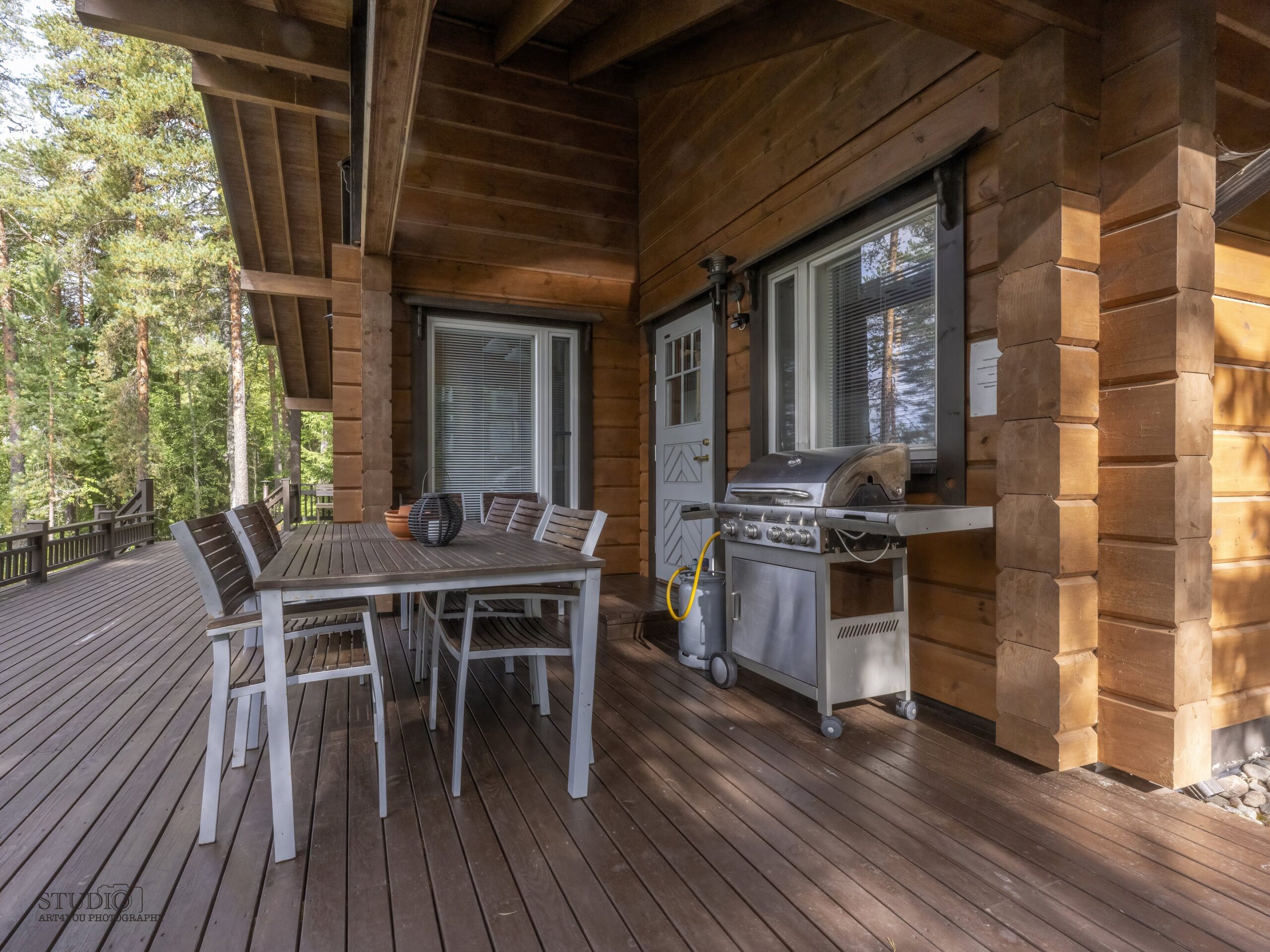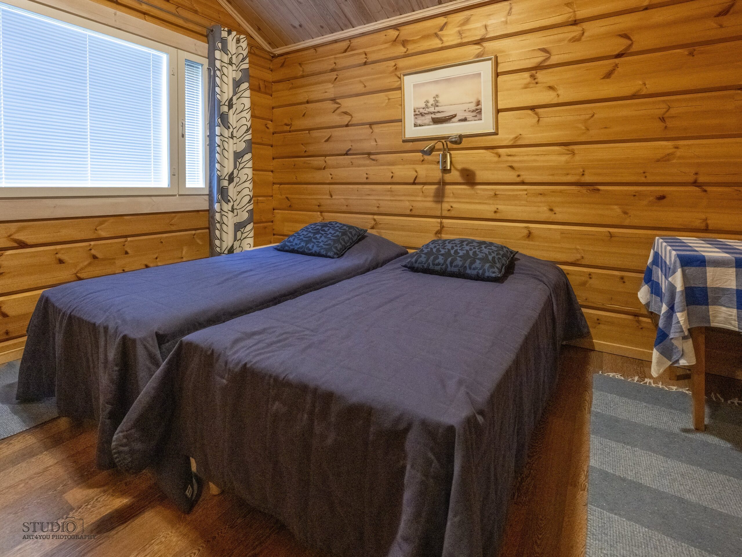Kolme makuuhuonetta, joissa majoitustilat 8:lle aikuiselle. Terassilla on kaasugrilli käytettävissä, soutuvene pelastusliiveineen sekä rosterinen kalanperkuupöytä rannan tuntumassa kalamiehille. Höylähirsikota illanistujaisiin ja grillijuhliin käytettävissä ilman eri korvausta, kunhan tilat siivotaan käytön päättyessä. Erillinen kodan siivousmaksu on 80 euroa. Mökin yhteydessä myös 8:n hengen lämmitettävä, kannella varustettu palju saunailtojen kruunuksi eri hintaan.